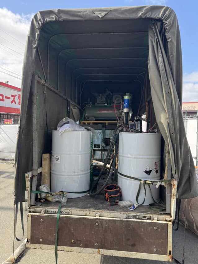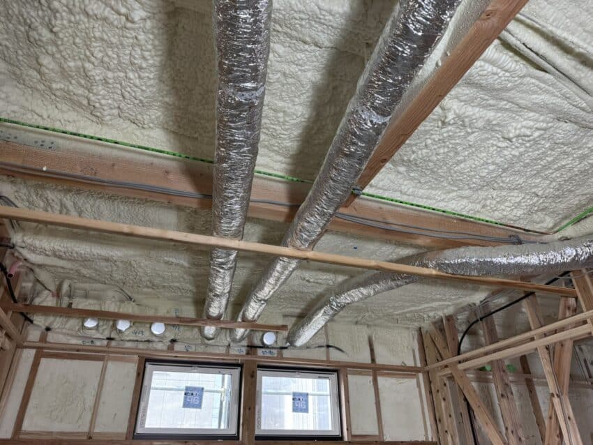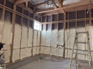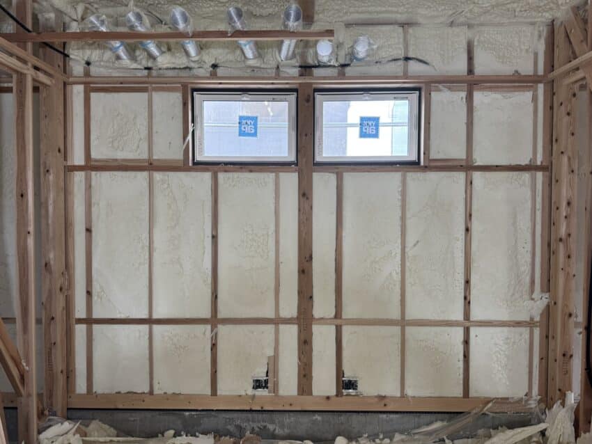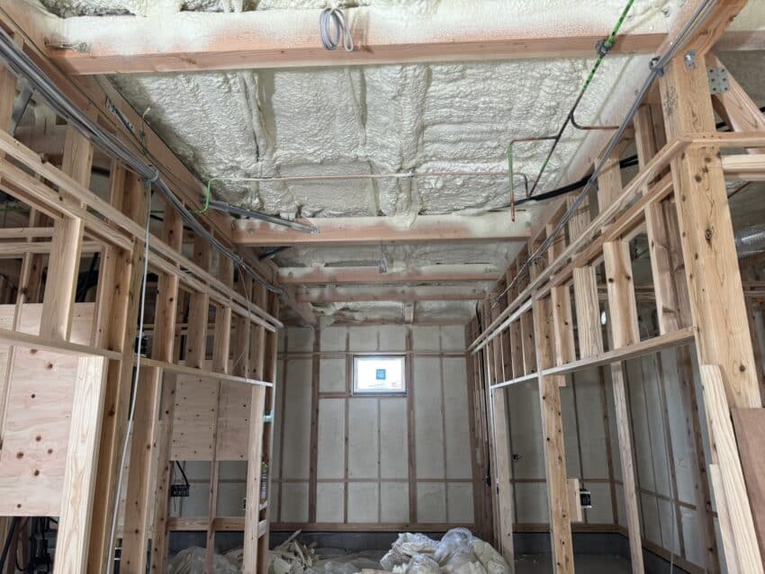 今日は内部のウレタン断熱材の吹き付けです。