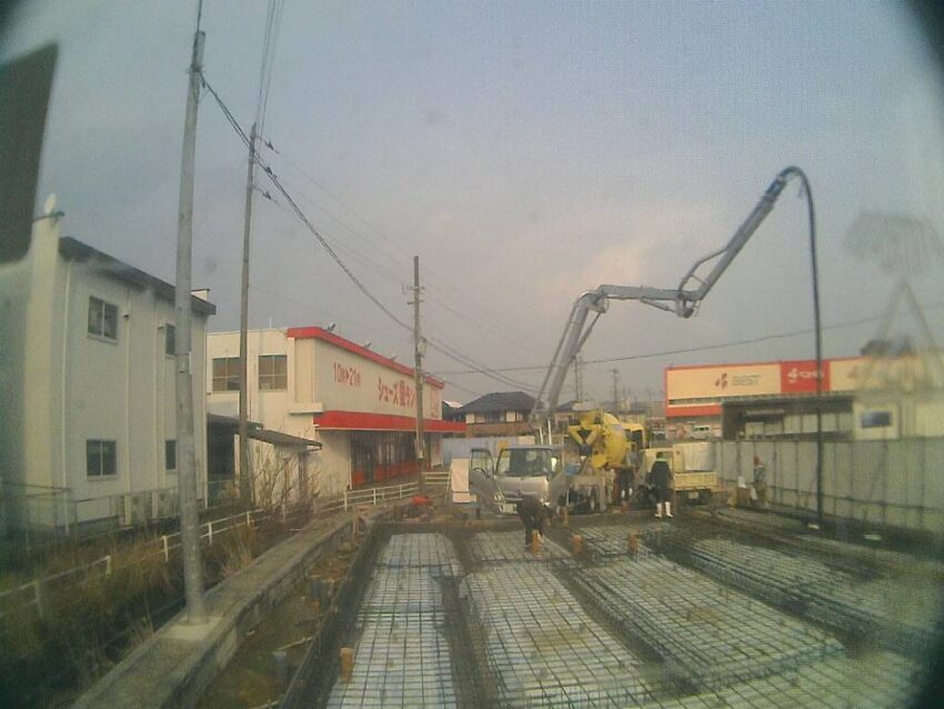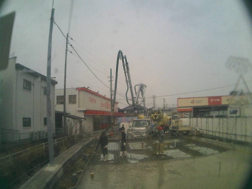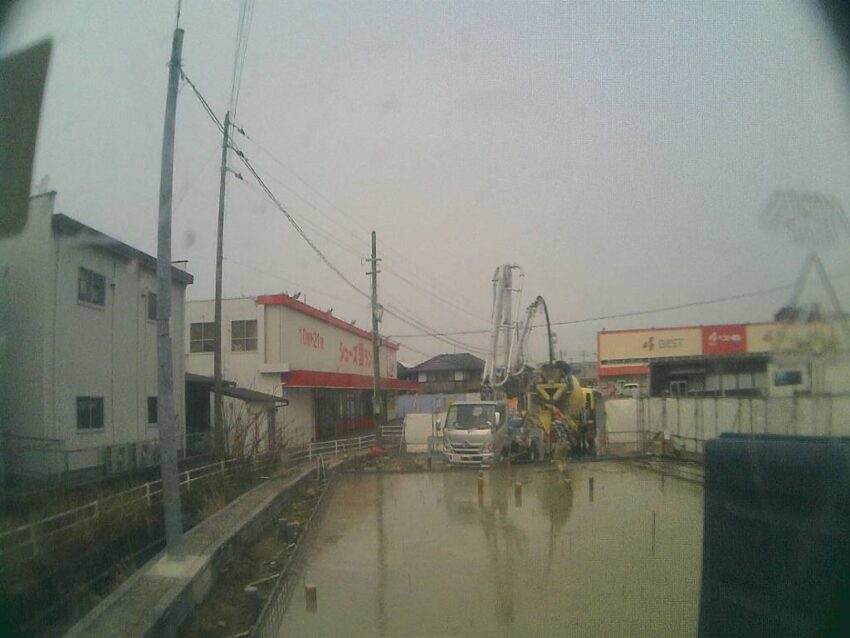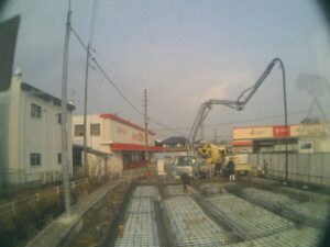 今日はコンクリート打設です。ポンプ車が来てます。
