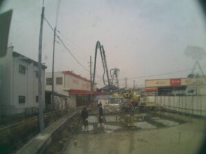 ポンプでコンクリートを流し込んでいきます。