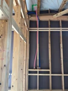 ウレタン吹き付けの前に外壁面に通す配管とかを逃がします。