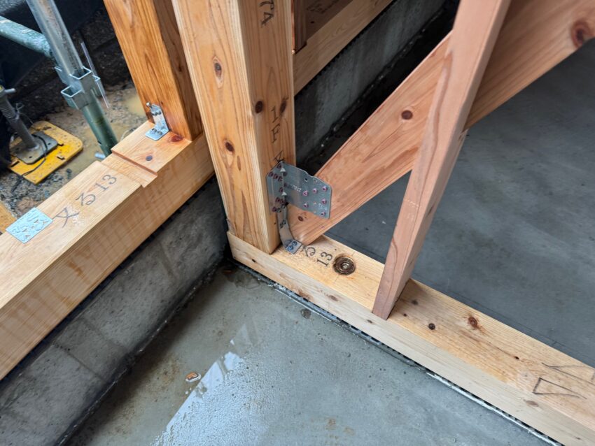 筋交いと間柱と金物を取り付けて行きます。