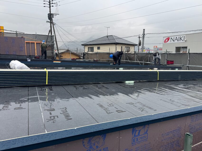 屋根屋がルーフィングを貼りにきました。
